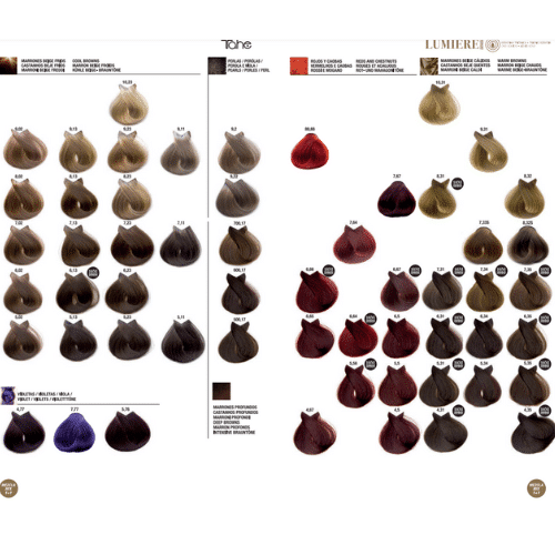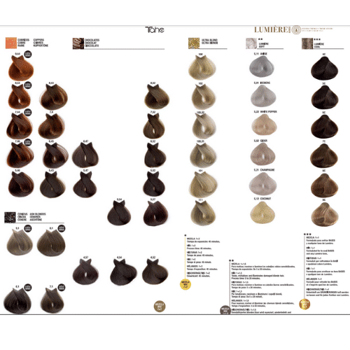 Cała paleta kolorów Lumiere Express 130 wspaniałych odcieni. W tym 6 odcieni superrozjaśniających i 6 odcieni do trudnej siwizny, oraz 12 pigmentów w tym rozjaśniających.