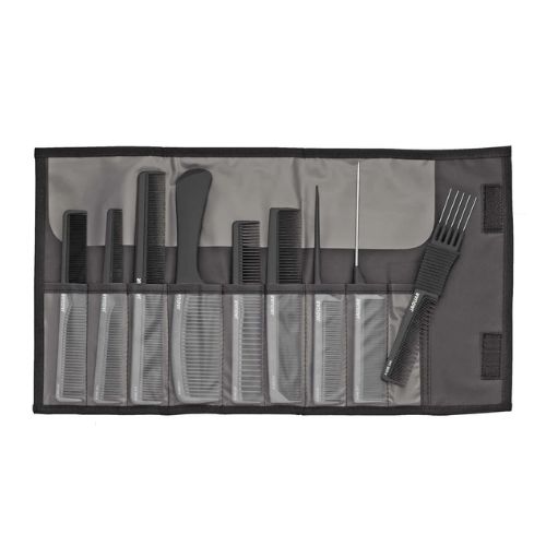 Idealnie wyposażona do codziennego użytku w salonie: JAGUAR A-LINE w kolorze czarnym łączy dziewięć profesjonalnych modeli grzebieni w jednym praktycznym etui – od grzebieni do strzyżenia włosów w czterech rozmiarach, przez grzebienie do ogonów, po grzebienie uniwersalne, grzebienie z uchwytem i grzebienie do tapirowania. Odpowiedni grzebień do każdego rodzaju włosów i techniki stylizacji.